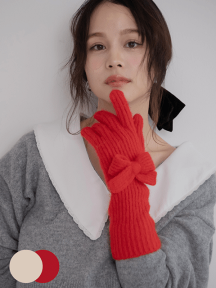 • 【Casselini】ロングニットリボングローブ