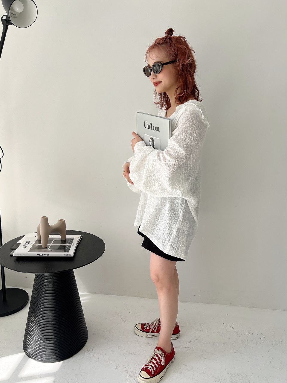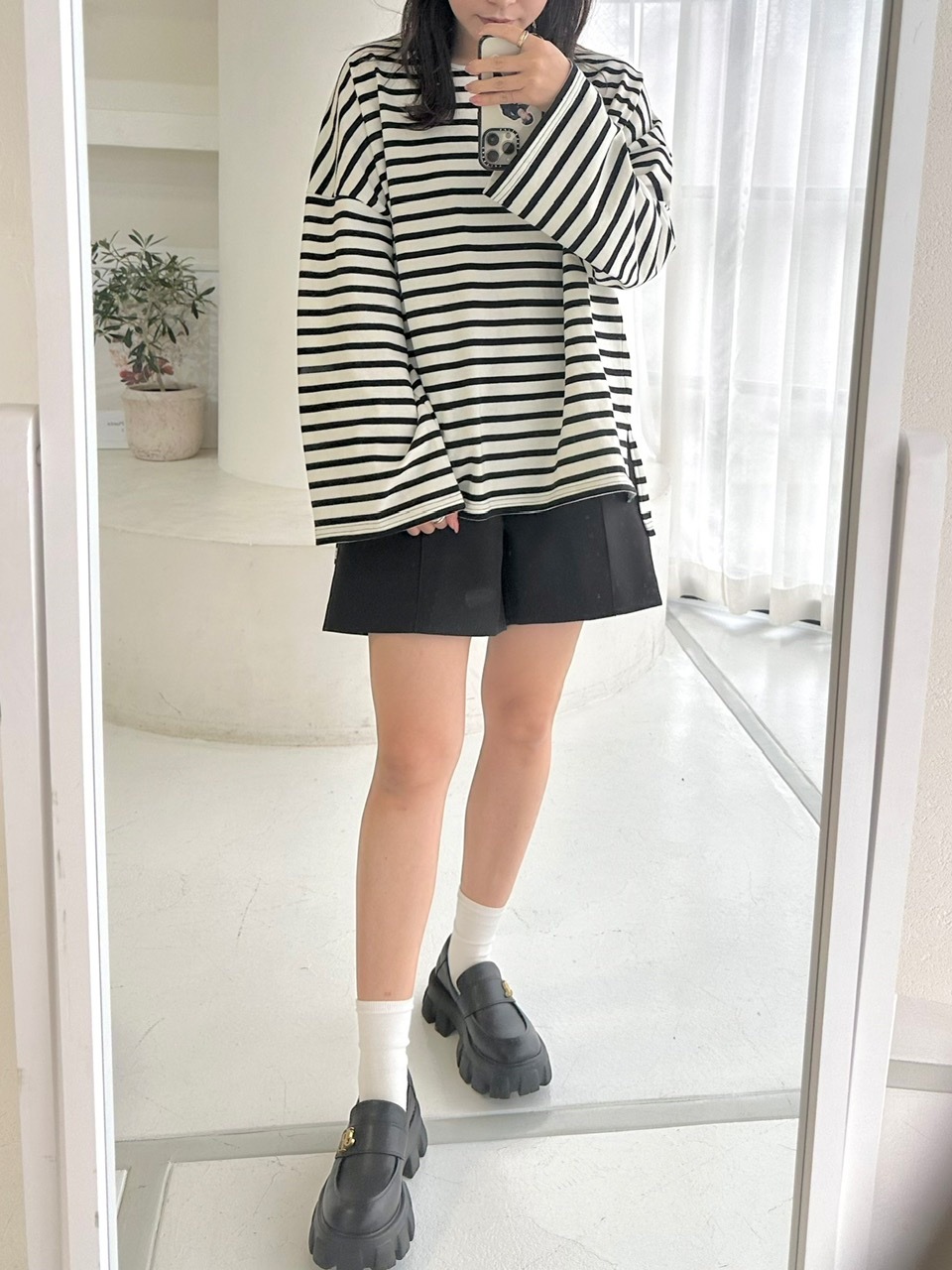 カットソーと合わせたカジュアルなスタイルから、