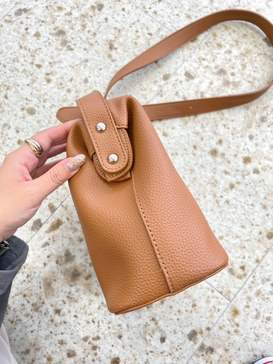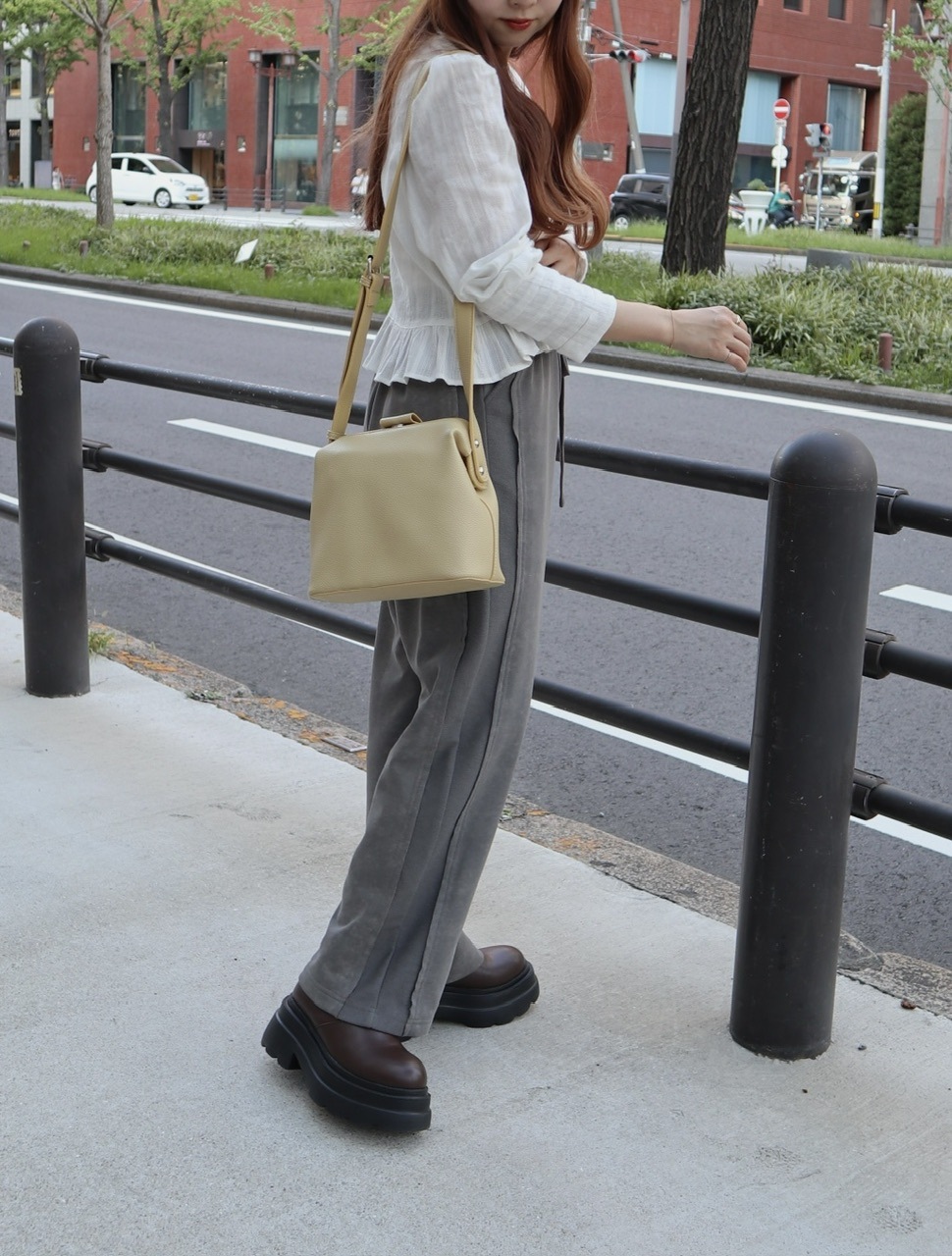 通年使えるスクエア型のショルダーバッグが登場◎