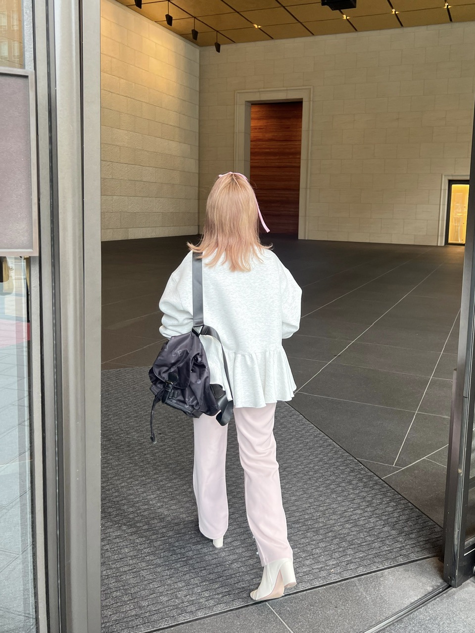 トレンドライク見た目で合わせやすいスラックス使用に。