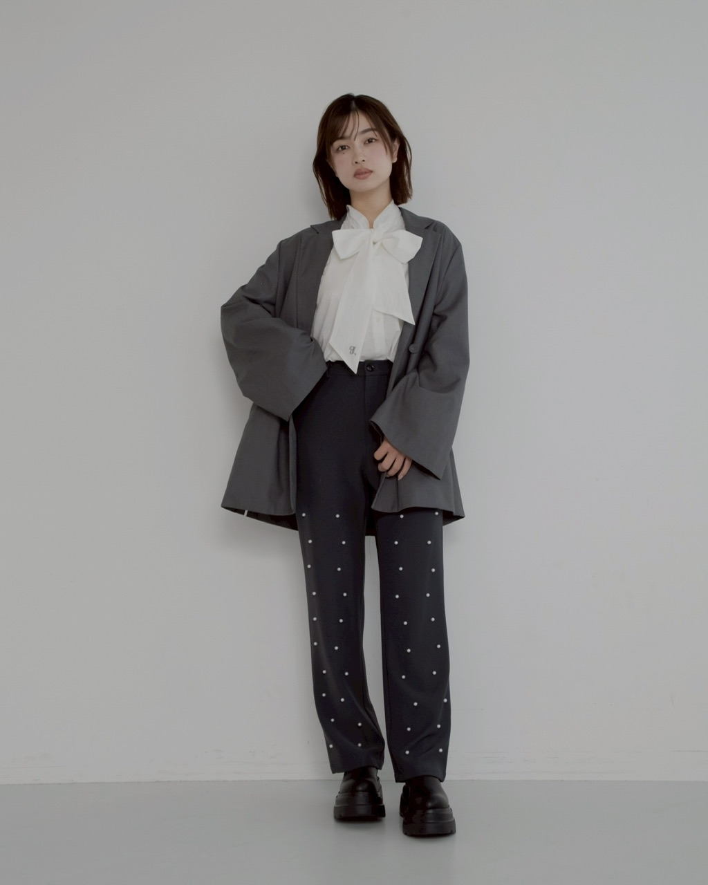 少しフォーマルにも着こなせるのでパーティーシーンにも是非。