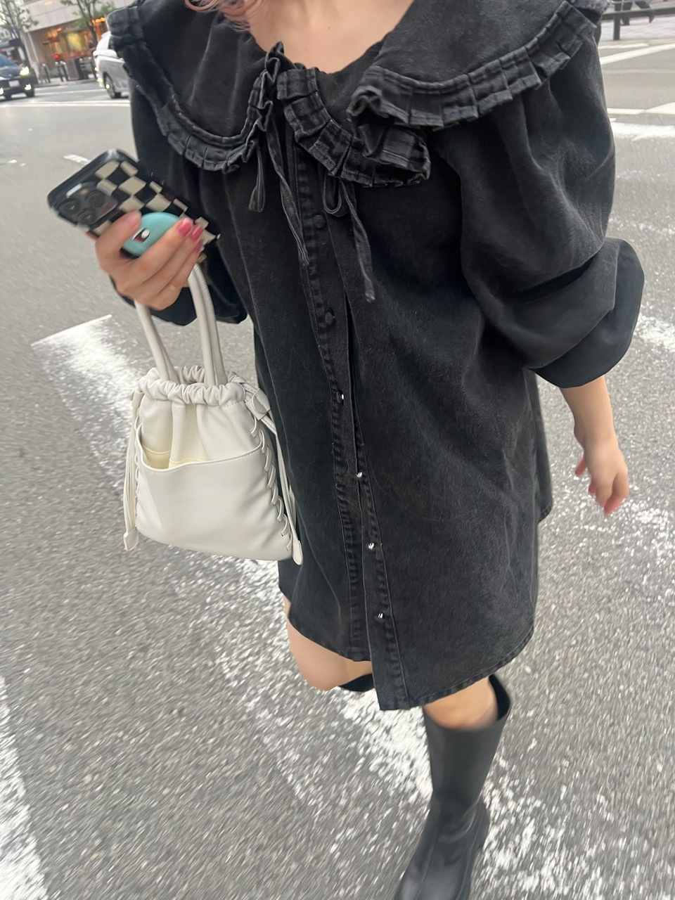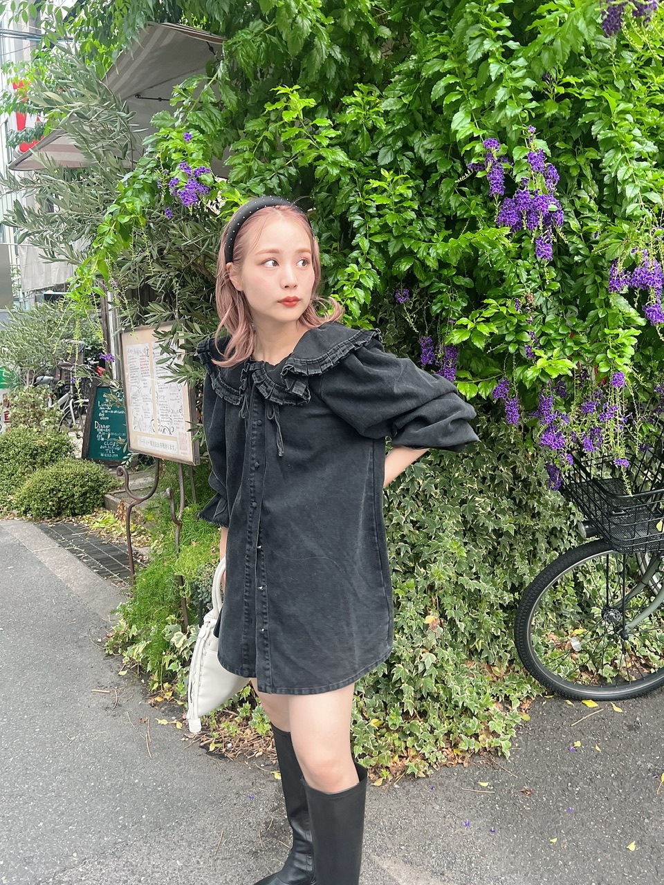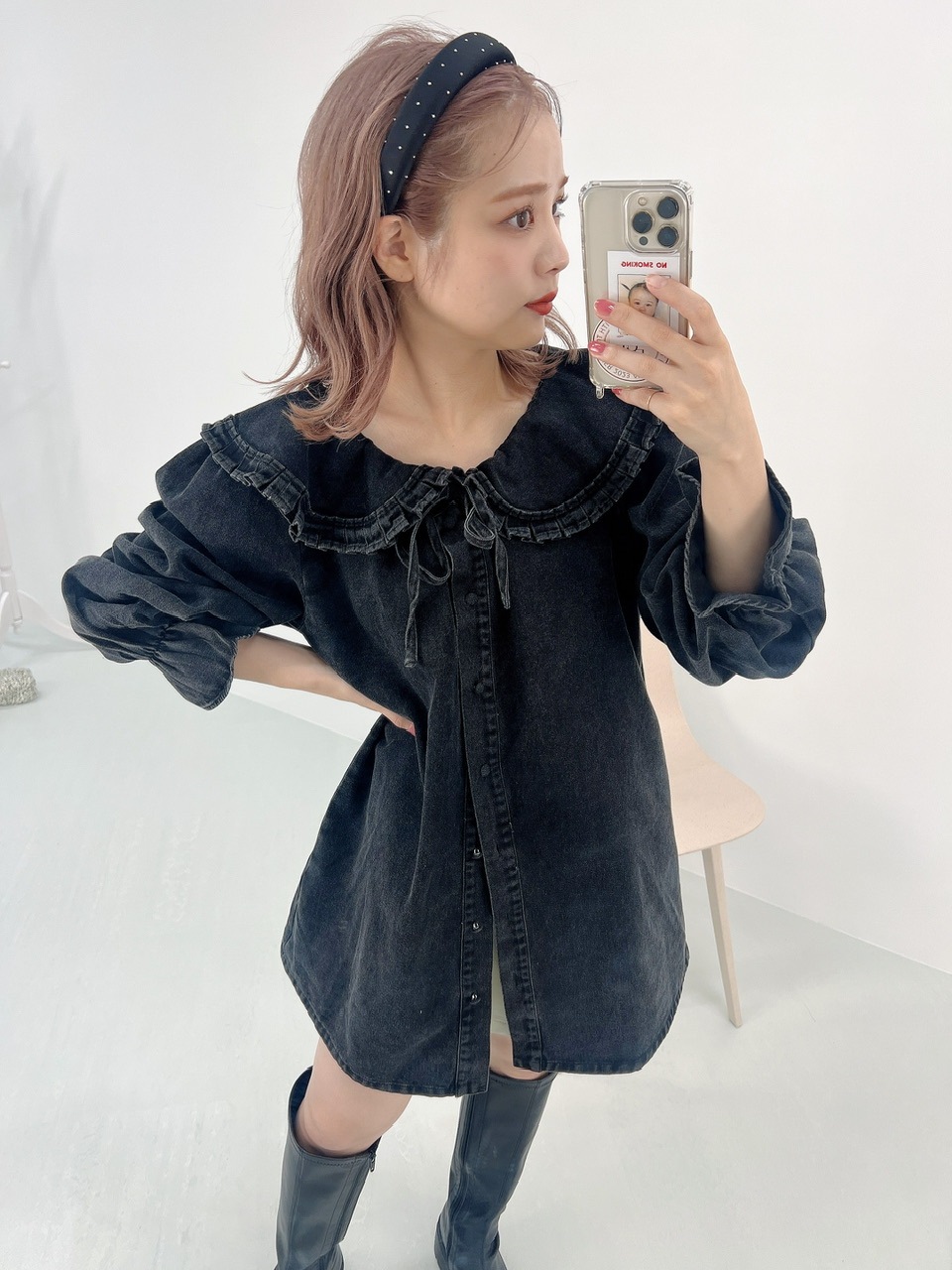 オトナに着こなせるウォッシュブラックのデニムシャツ。
