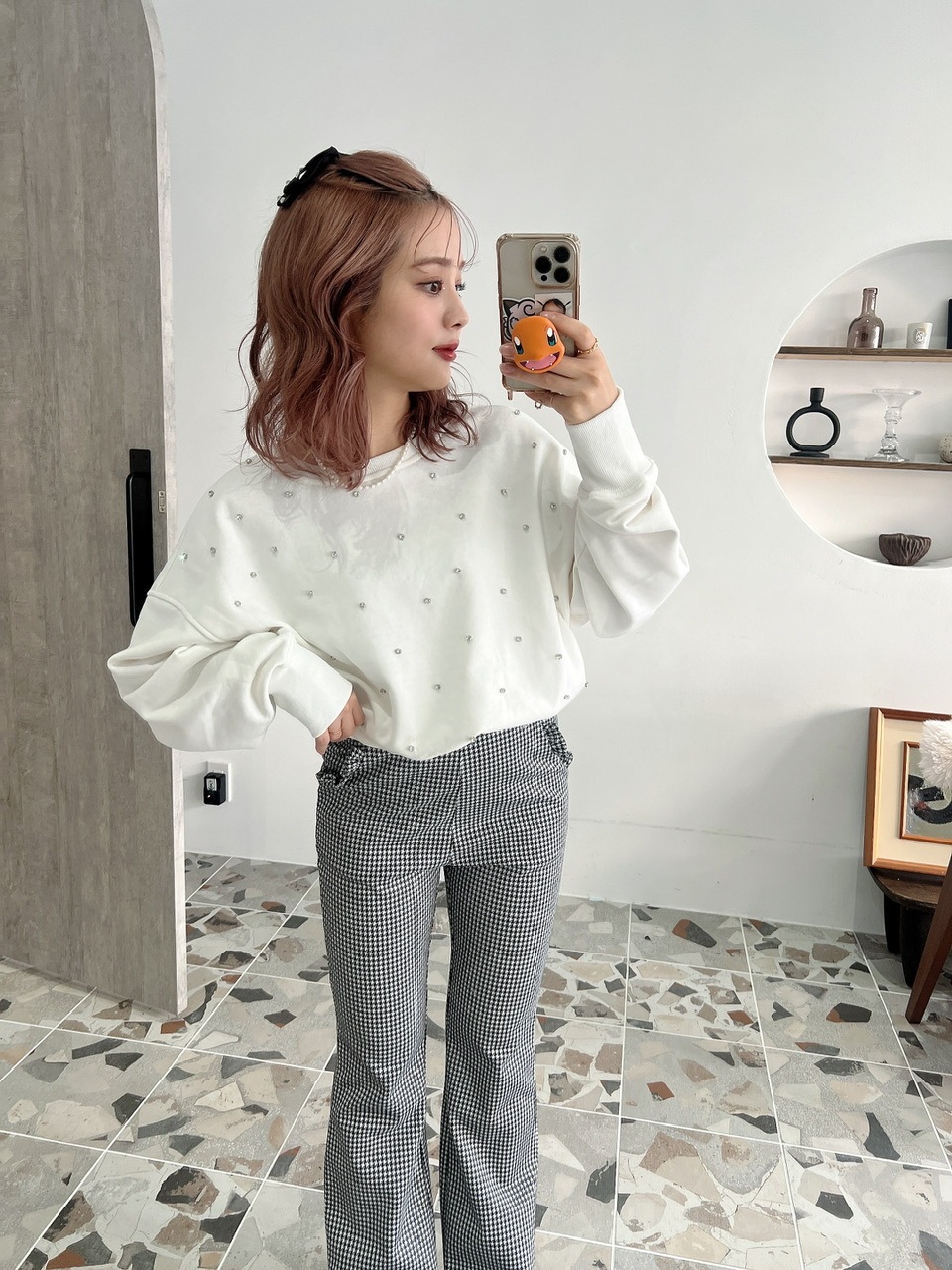 JUMELLEらしいハイウエストのボトムと合わせれば、