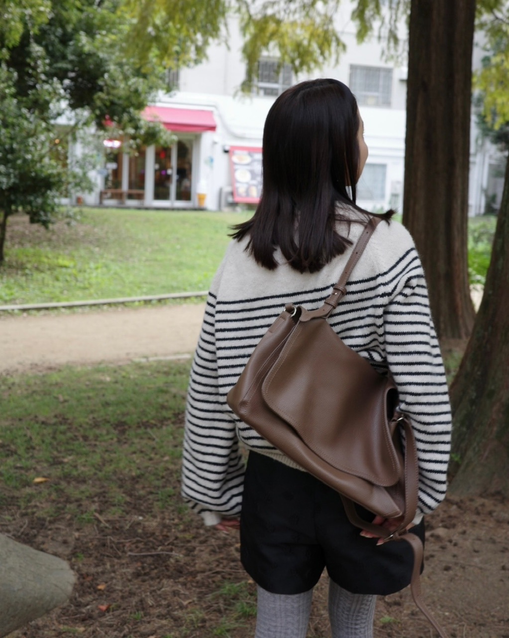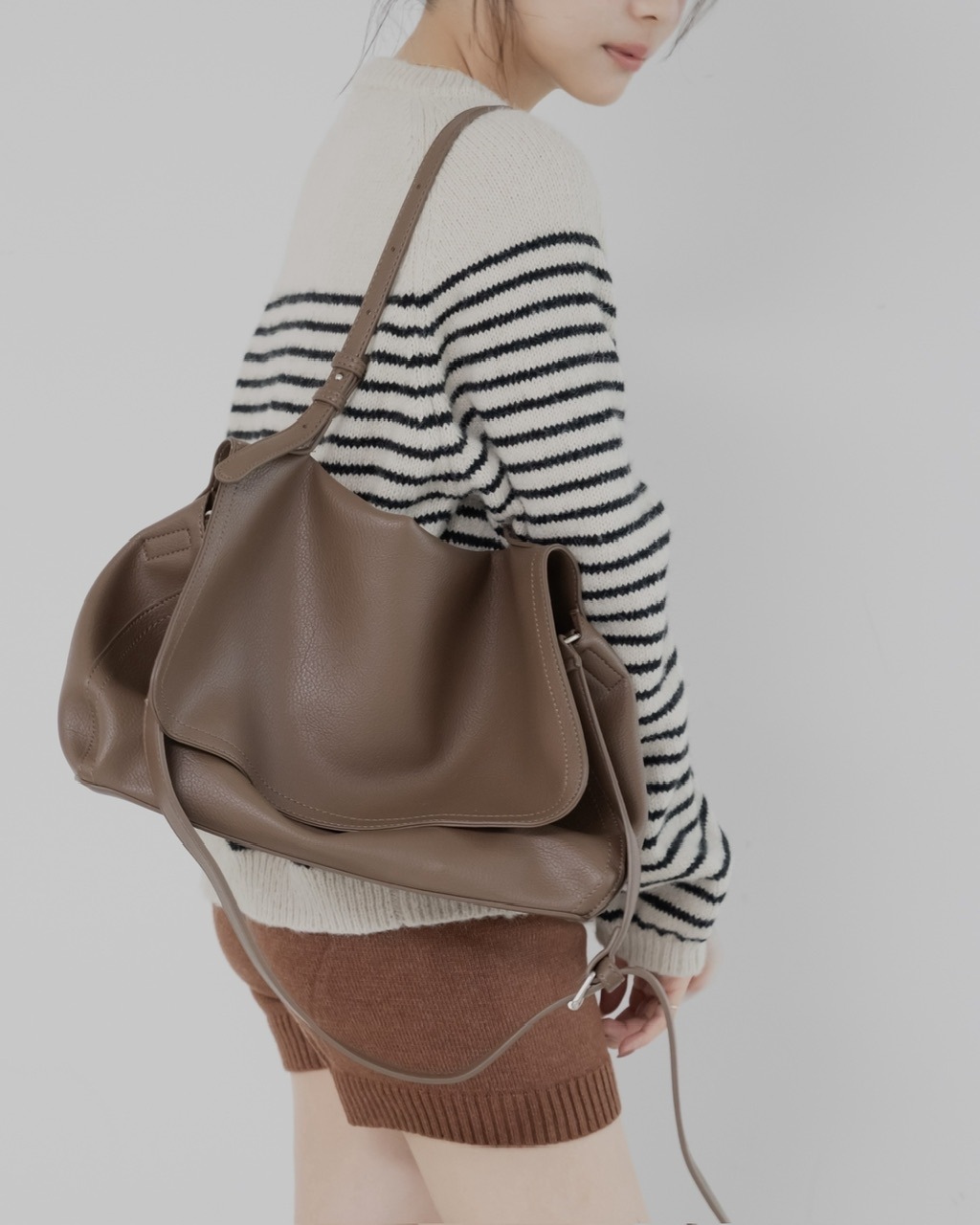 肩掛けにしたり、斜め掛けにしたりと
