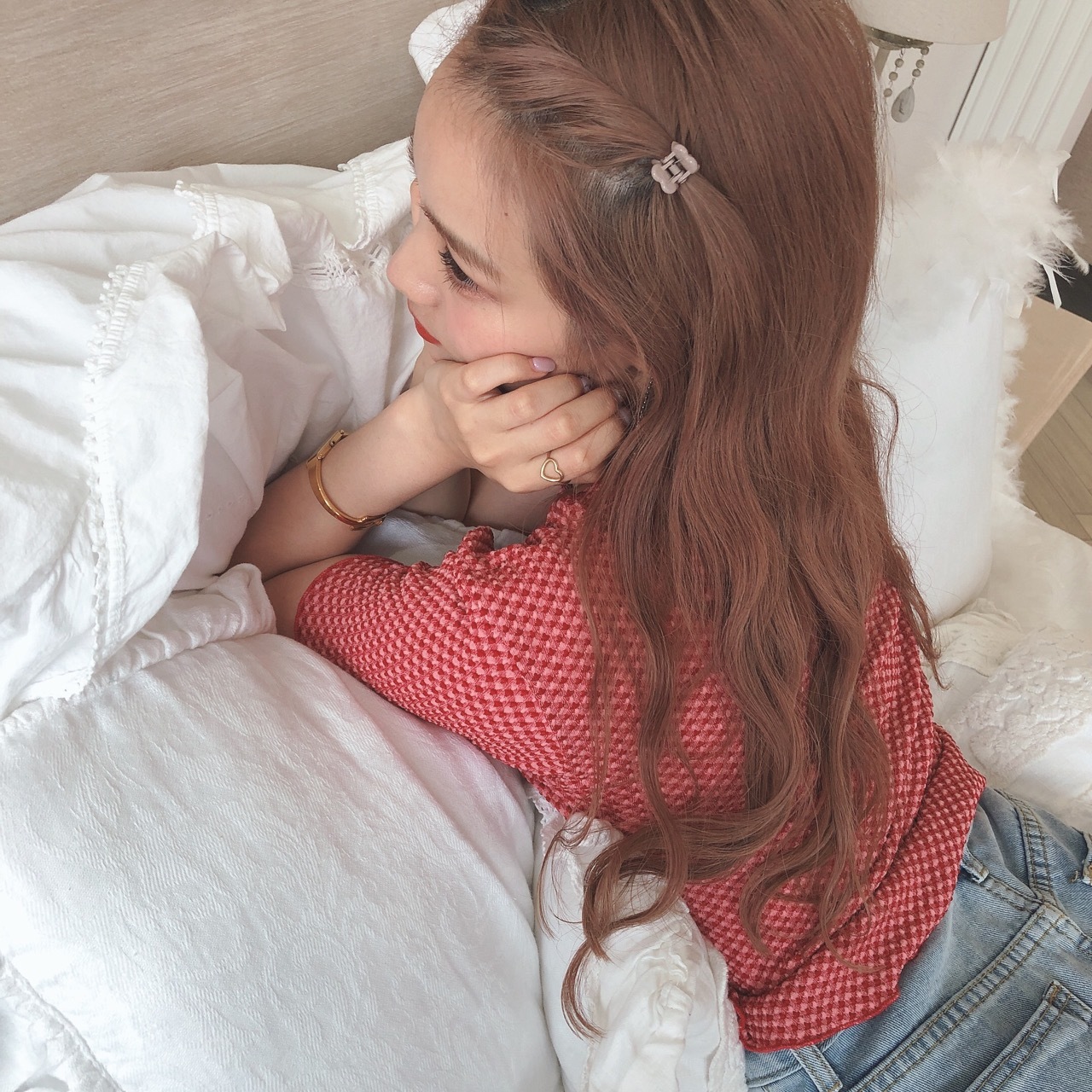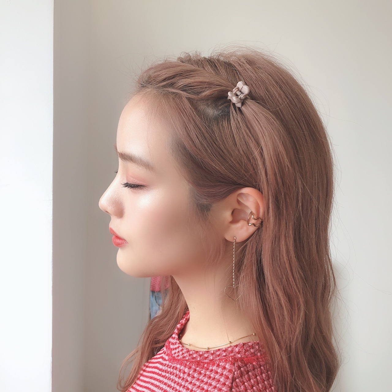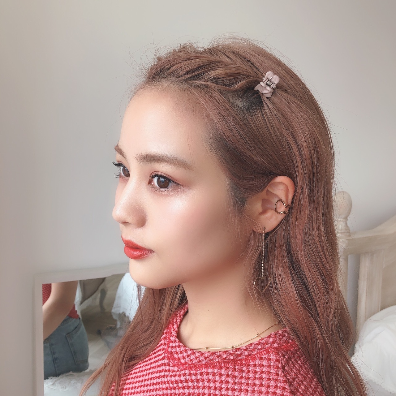 前髪を留めるのにも、ワンカラープラスでアクセントに。