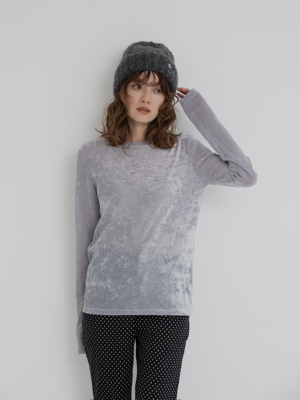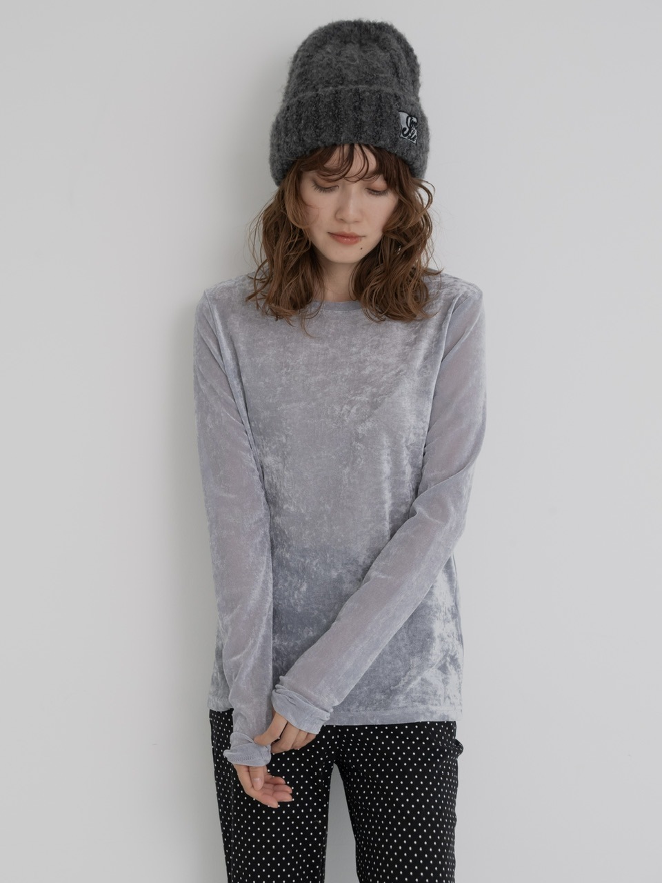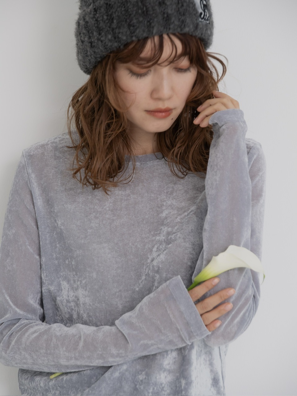【SALE】【official限定】sheer velours top グレー ※残りわずか