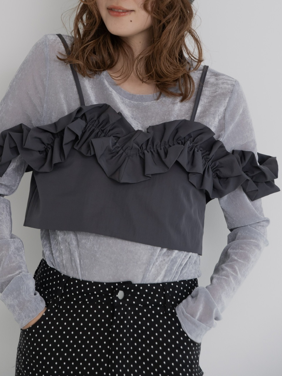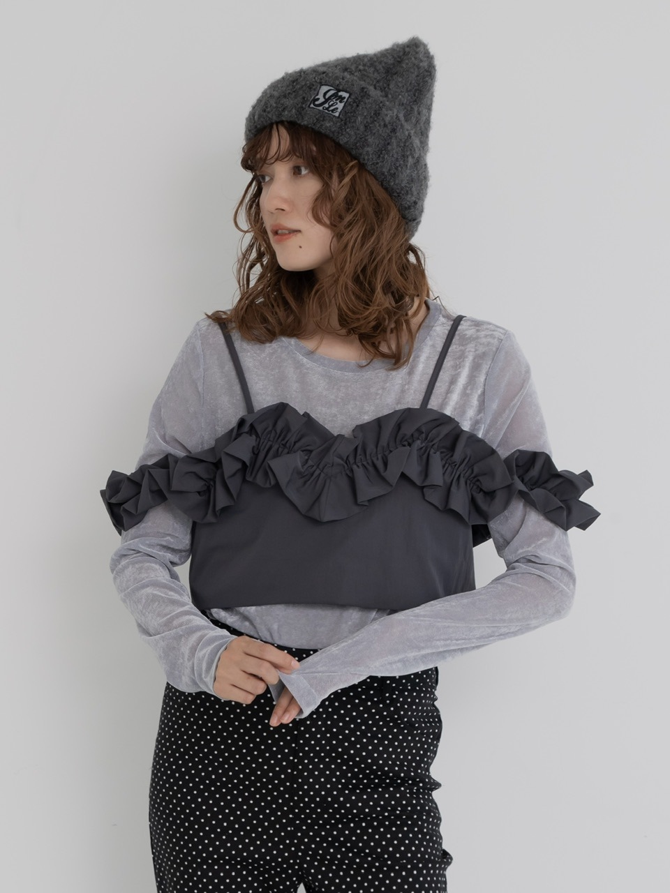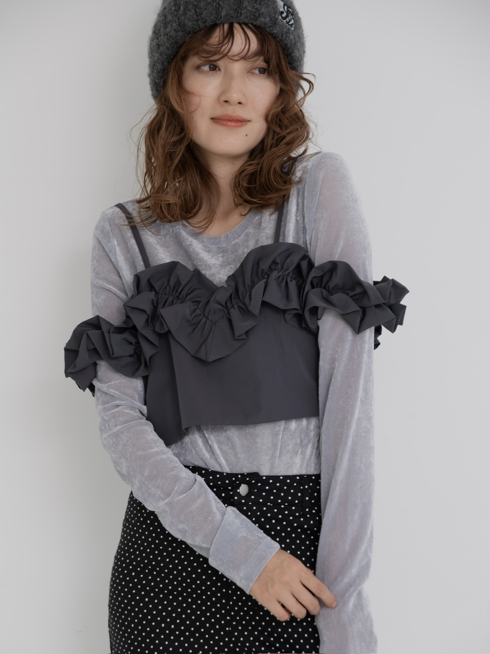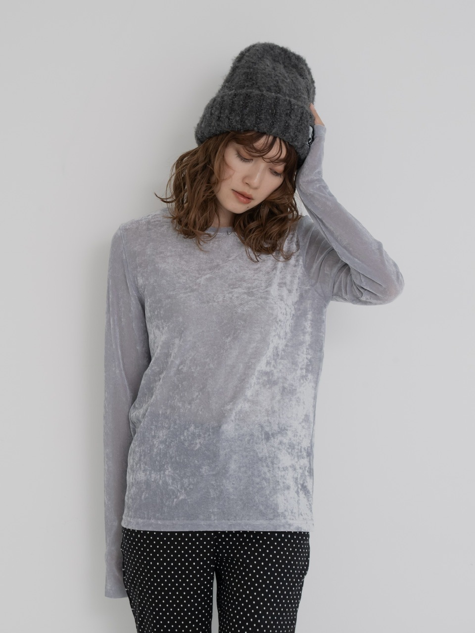 【SALE】【official限定】sheer velours top グレー ※残りわずか
