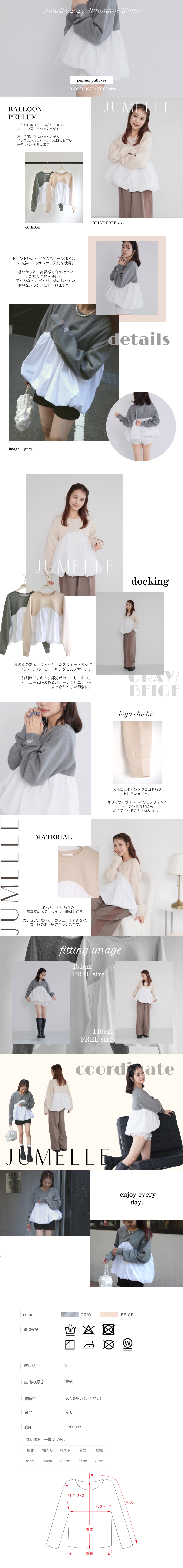 ペプラムプルオーバー BEIGE