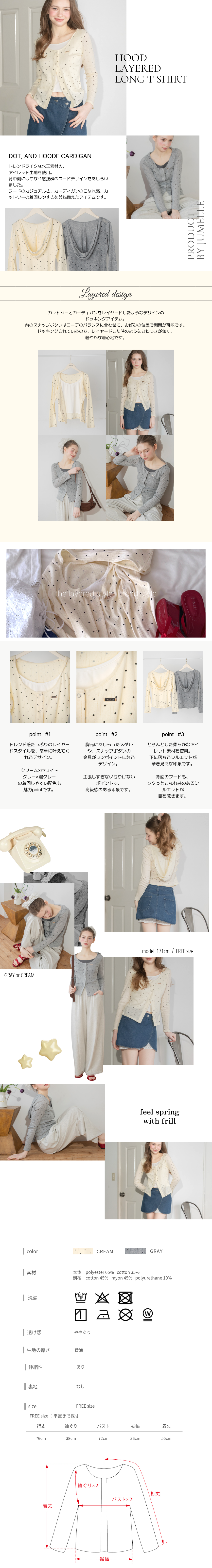 フード付きレイヤードロンT GRAY